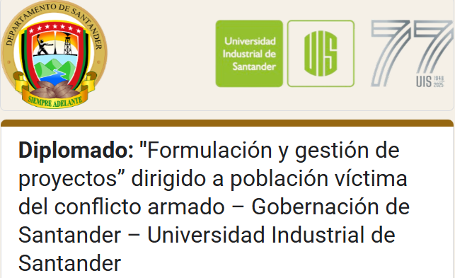 Hasta el viernes 7 de noviembre estará abierta la convocatoria liderada por la Gobernación de Santander y la Universidad Industrial de Santander (UIS), que busca fortalecer las capacidades de las personas víctimas del conflicto armado a través del curso “Formulación y gestión de proyectos”, una iniciativa gratuita orientada a promover la autonomía, el liderazgo y la reconstrucción del tejido social.